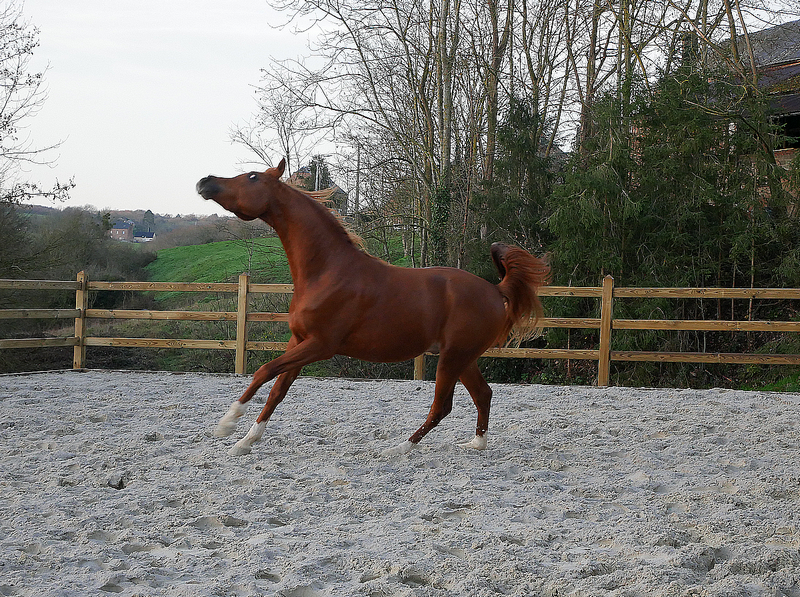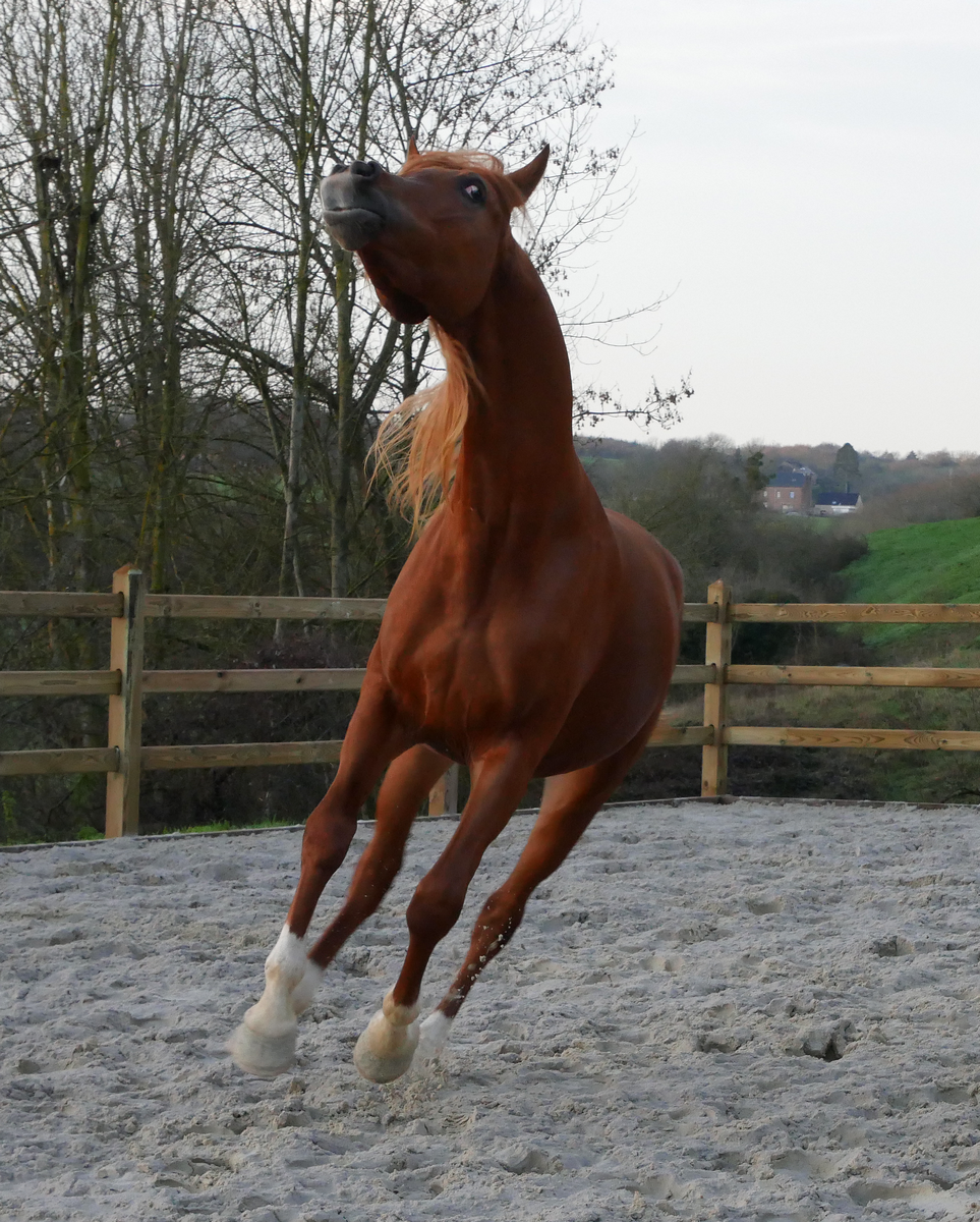 By Kosmonaut, senior champion in show, race horse performer who was used as an improver by the Trakehner stud-book. Kosmonaut is the full sibling to the Holland national champion Karnaval, sire, between many other ones, of Valujevka, one of the best race mare in Russia, winner of the 2011 WAHO Trophy and dam of 14 excellent racehorses, used with great success in breeding too. The dam of Kosmonaut is the legendary Karinka 2/21 (8-8-2-1-2),, the dam of Drug, Dre***, 5/35 (13-9-4), European show champion and winner of three prestigious stake races : the Russian Derby, the Coupe d’Europe in Evry and the Al Nayan International at Kempton Park in England. Drug is the sire of our former broodmare Pokupka, of the endurance horse producer Karesi DRE*** and of numerous wonderful race and show horses.