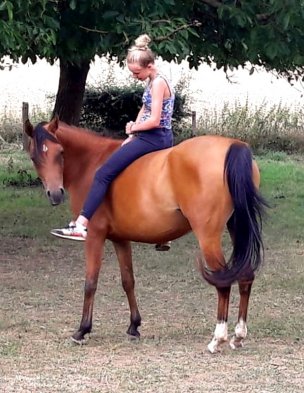 Sous la selle, Maïa est paisible, confiante et à l'écoute. Sereine, elle n'a peur de rien et aime découvrir son environnement.