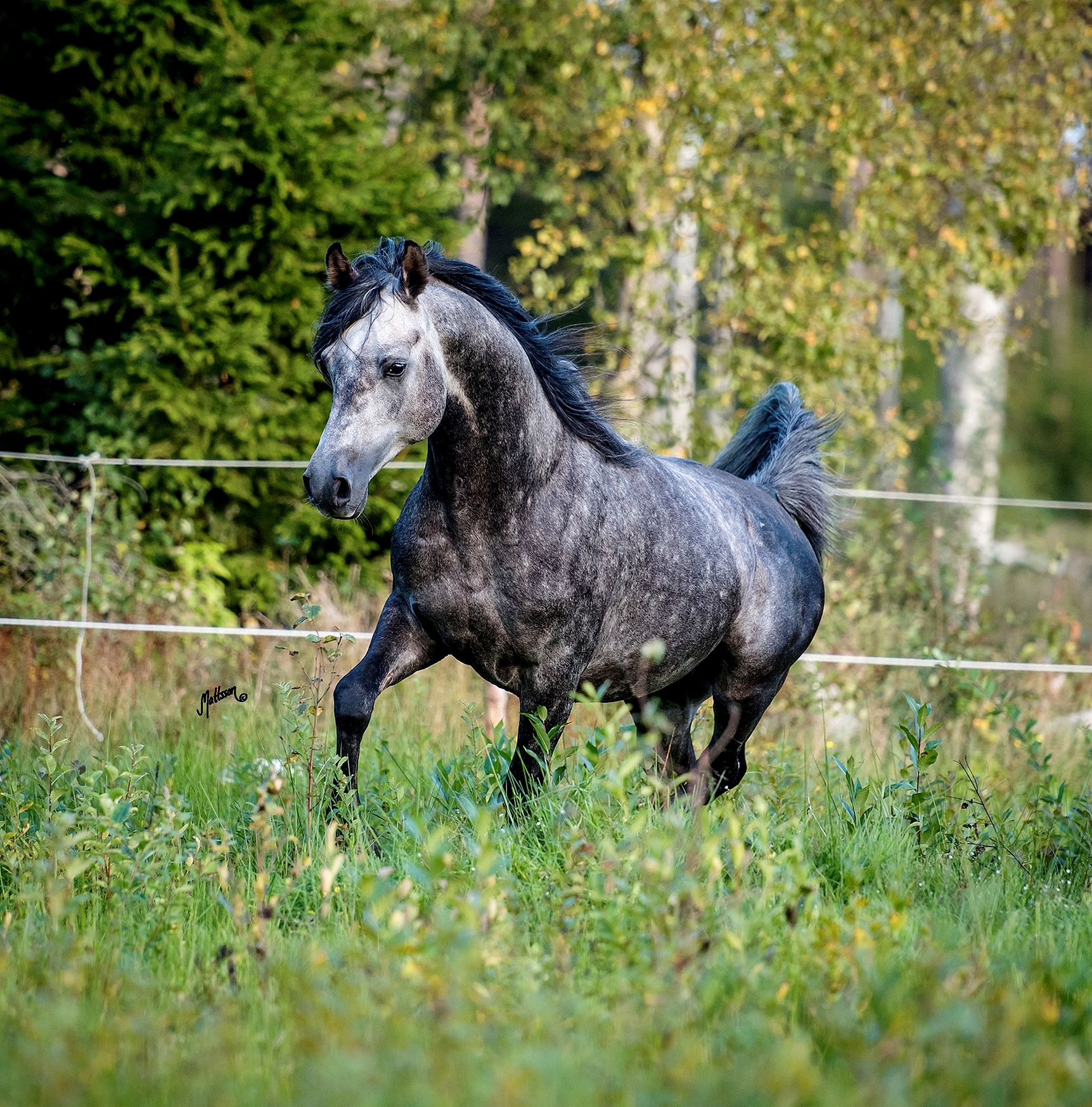 Je contactai donc Elena Werdenberg, qui gère les relations commerciales de Tersk Stud avec les clients étrangers et est également une collègue Juge, pour lui exprimer mon intérêt pour Prize Tersk. Deux ans plus tard, un message d’Elena : « Nous voulons savoir si tu es encore intéressée par Prize ». Je n’ai pas hésité une seconde. Le superbe gris sombre, fils du légendaire Moment, hors de la très bonne lignée maternelle de Pantomima, allait rejoindre la collection d’étalons purs russes de Faber Arabians !