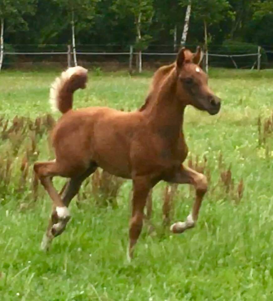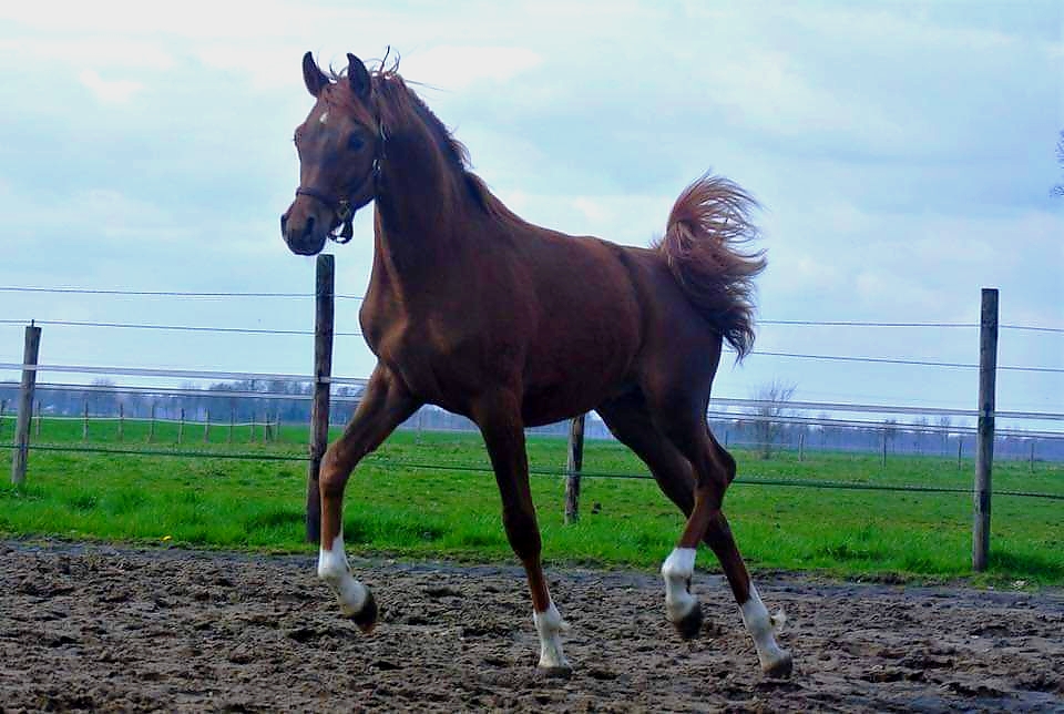 By MM Sultan, Elite and 2nd premium stallion, triple national champion in Holland, ECAHO Star horse. MM Sultan is a great sire and is currently owned by Davidson Arabians, Denmark. He is a son of the famous Kubay Khan, also Elite sire, ECAHO star horse and sire of, between many other ones, the very good Nakubaya Kossack, international show winner. The sire of Kubay Khan is the worldknown Kubinec DRE**, World, European and All Nations Cup champion, also sire of Tibet. MM Sultan’s dam is the valuable broodmare Alaska QQ, Elite mare and top producer by the great Vatican, 6 times Gr1 winner out of a rare Neapol sireline. She is the dam of several good show horses in Holland as Alkan and MM Cairo