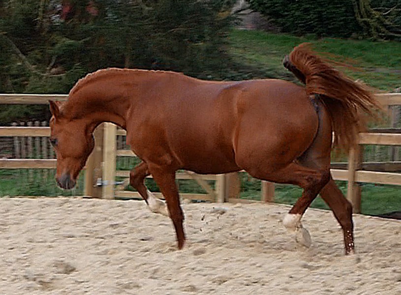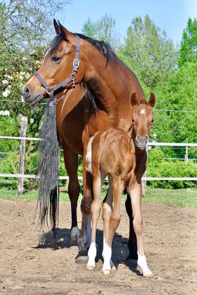 By Mir Khan, gold medal licensed stallion, Ster, several times National Champion and 1st place in International, 2nd during the All Nations Cup, high scoring horse Wels, himself by Mirok Monpelou, European Champion, by Vatican.