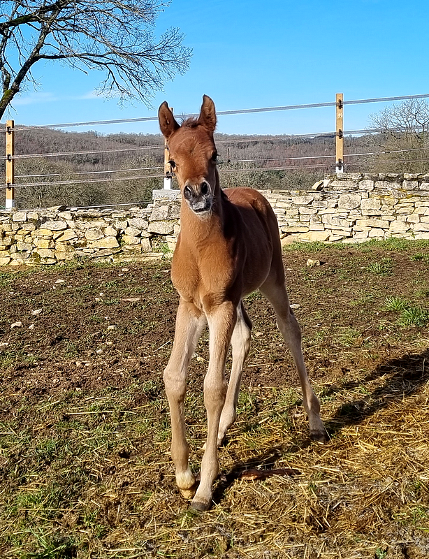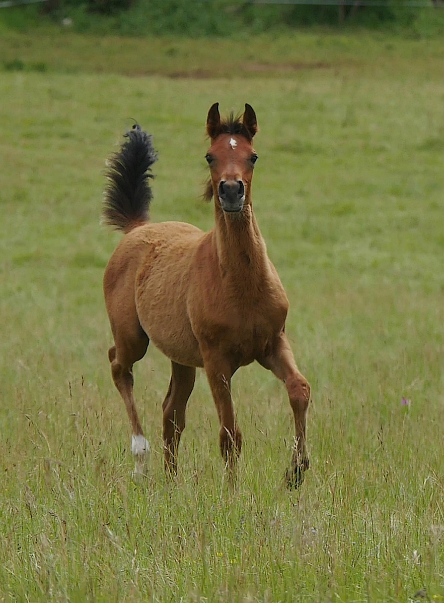Priz présente une superbe tête bien typée, front large, du dish, de jolis yeux, un tout petit bout de nez, une magnifique encolure naturellement arquée avec une mitbah fantastique, un ensemble dos/rein/croupe solide et très bien attaché, une croupe puissante, longue et horizontale, une très bon bassin oblique et long, des membres solides avec de l'os, de bons aplombs et des mouvements à se damner, avec beaucoup de force et d'équilibre naturel ! Une conformation vraiment supérieure !