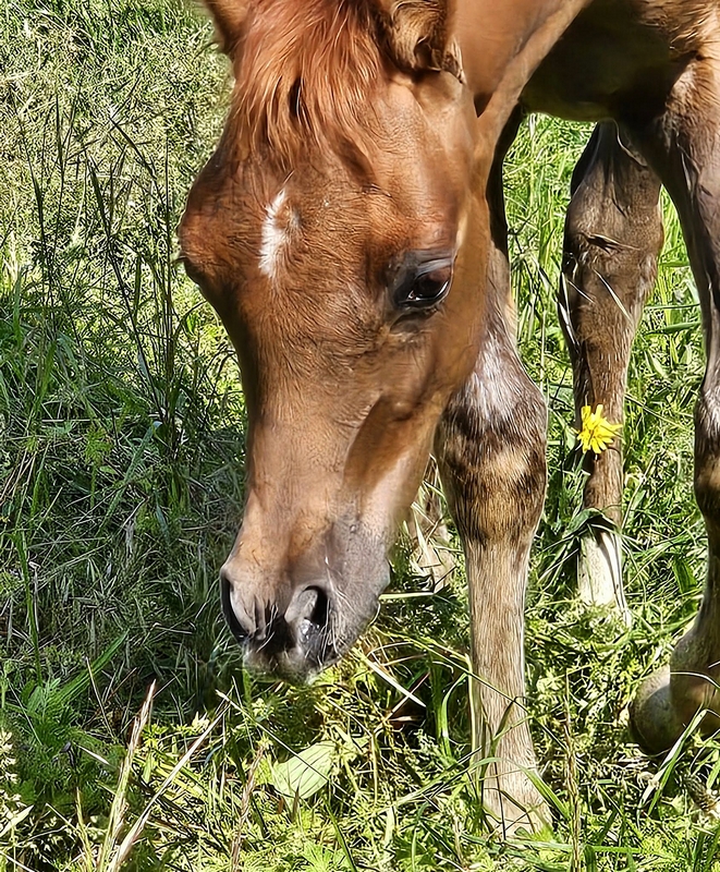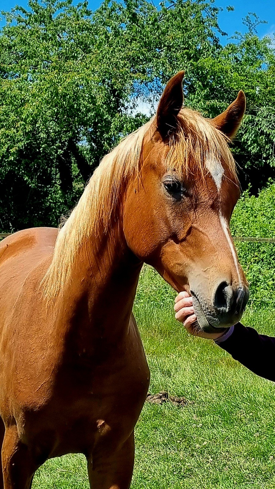 Priz est un jeune cheval doux, agréable et très à l'écoute. Il s'adapte facilement, se montre curieux, confiant et adore le contact humain.